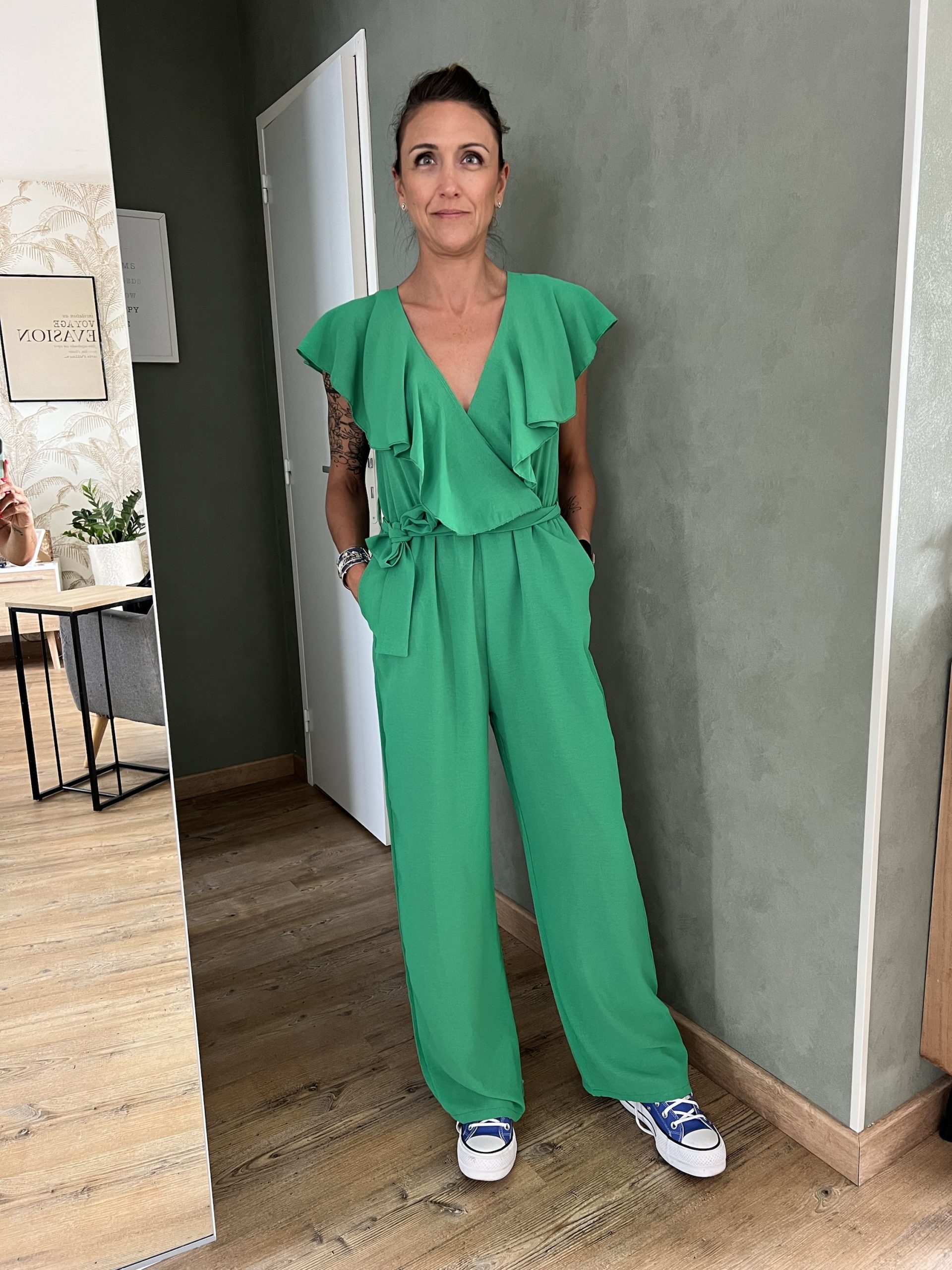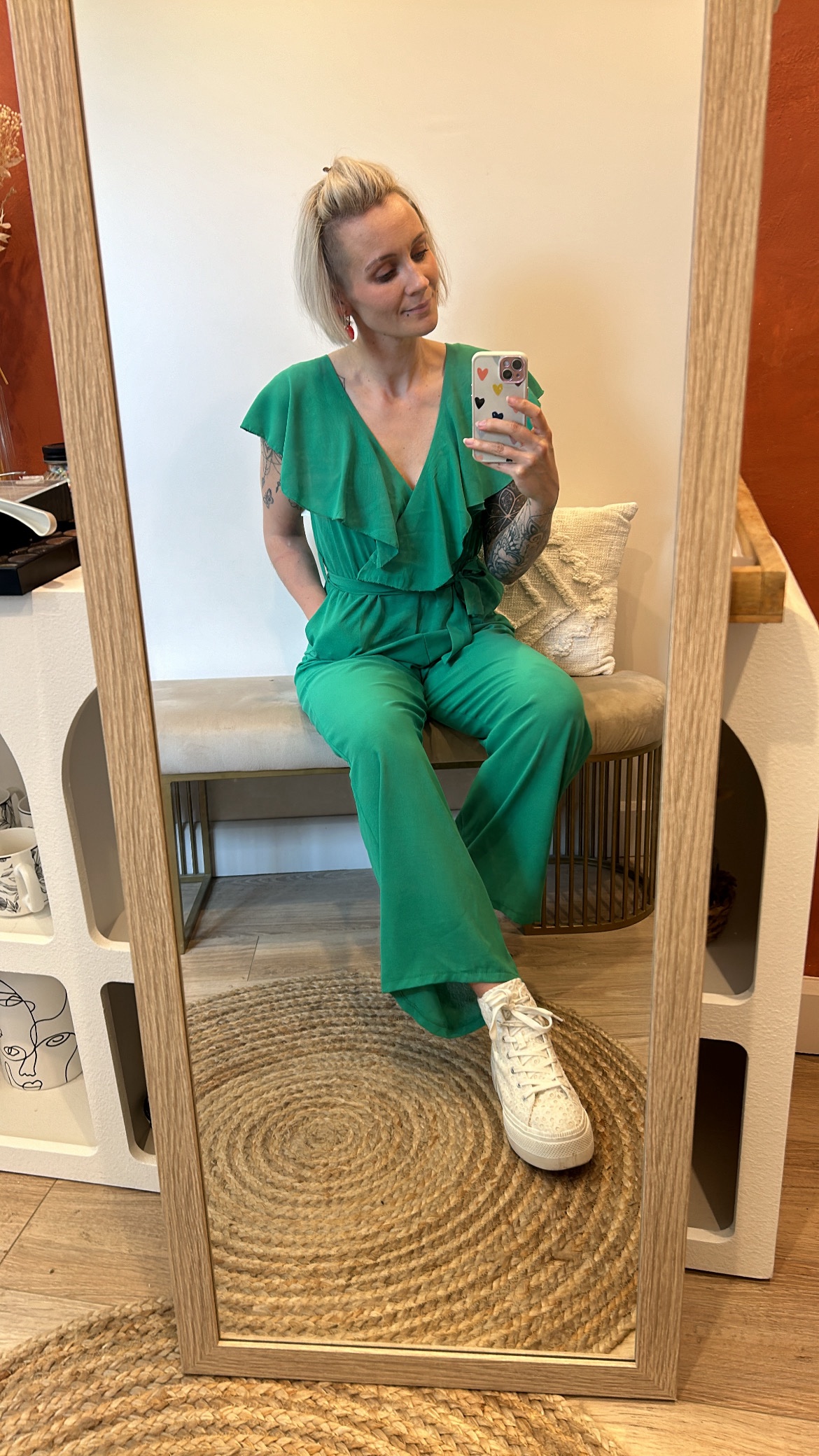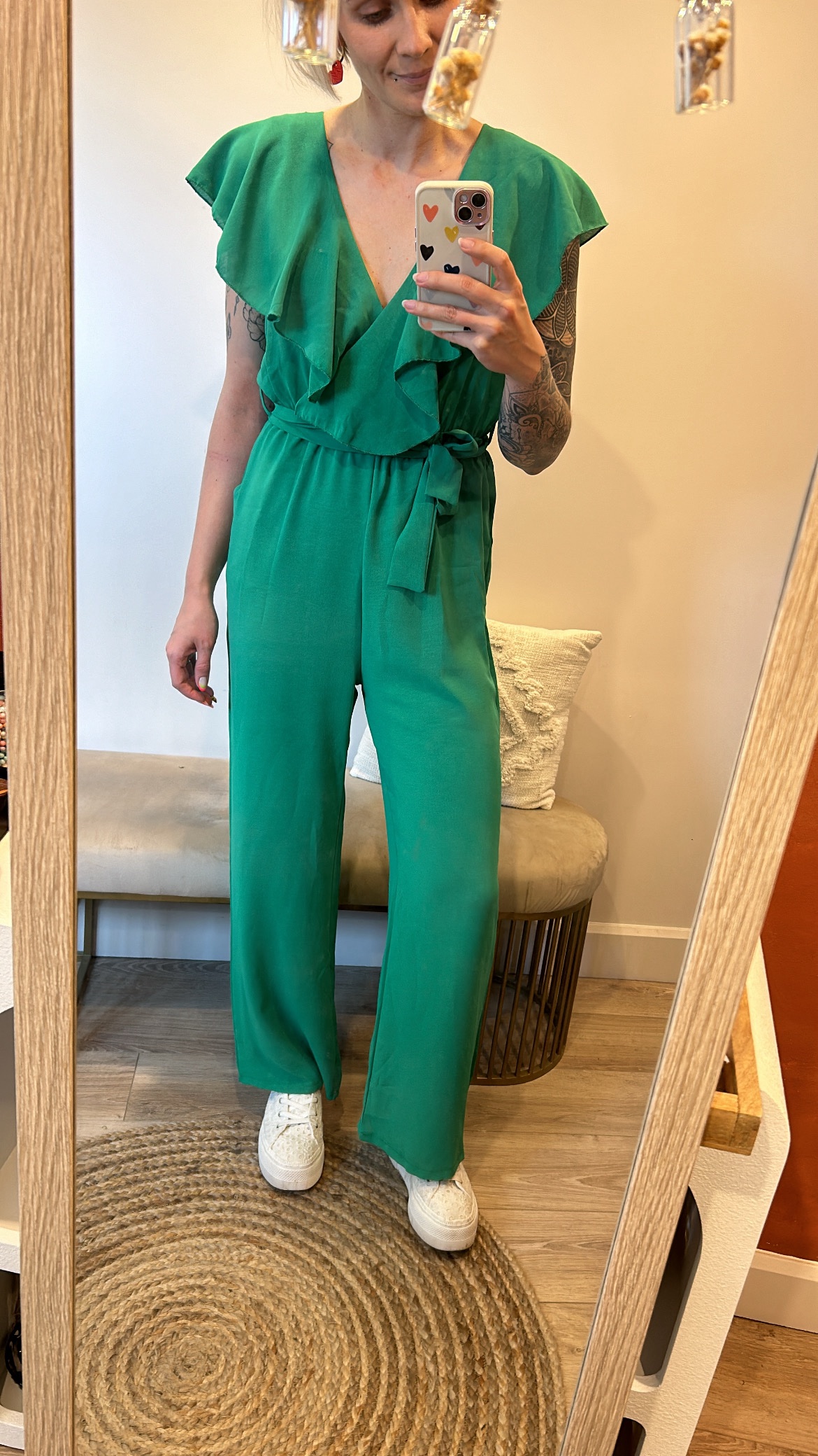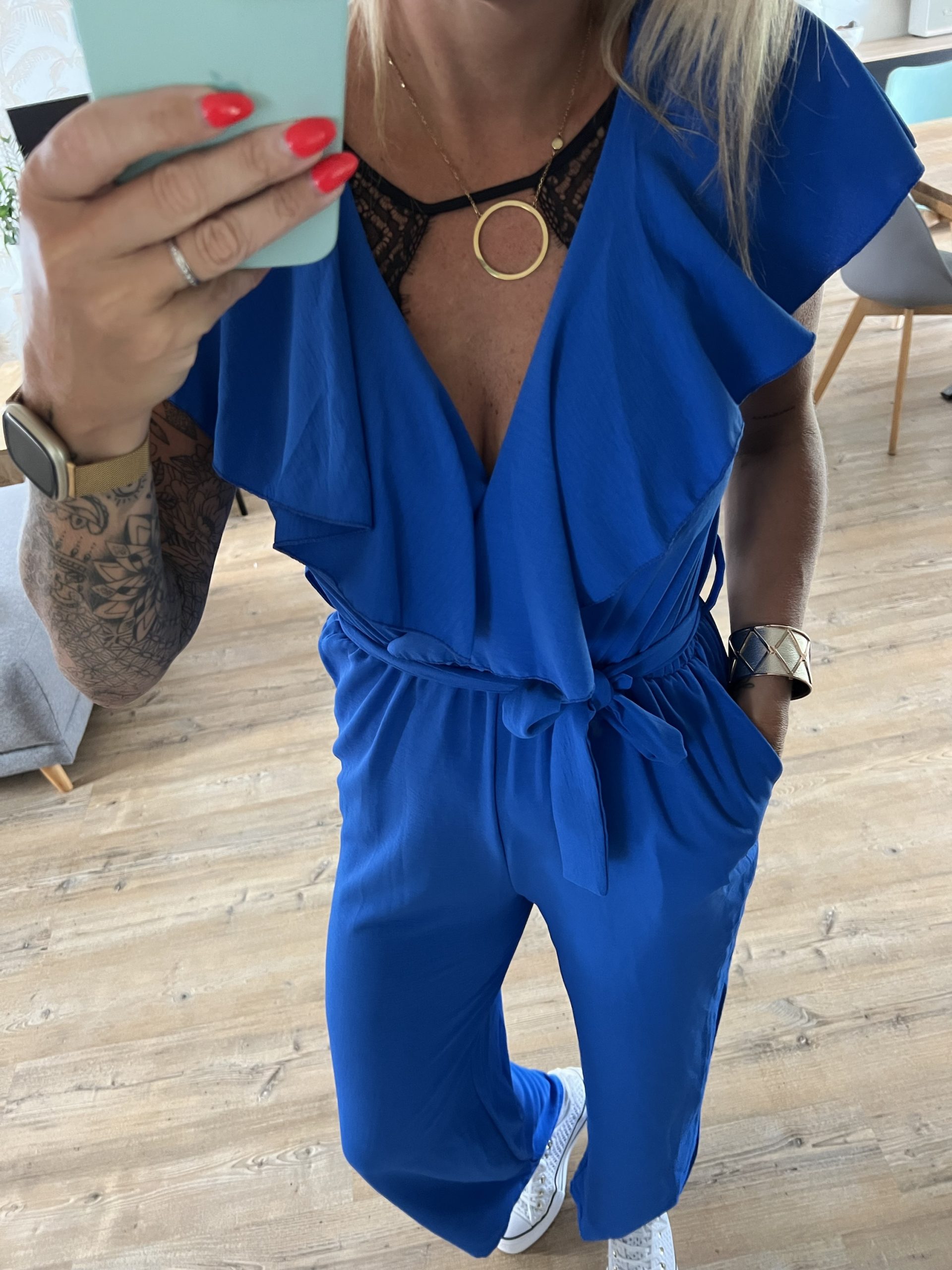Combinaison taille élastique, lien à nouer à la taille (peut être remplacé par une ceinture). Détails dans le dos et très agréable à porter. Taille unique allant du 36 au 42, plusieurs coloris disponibles.