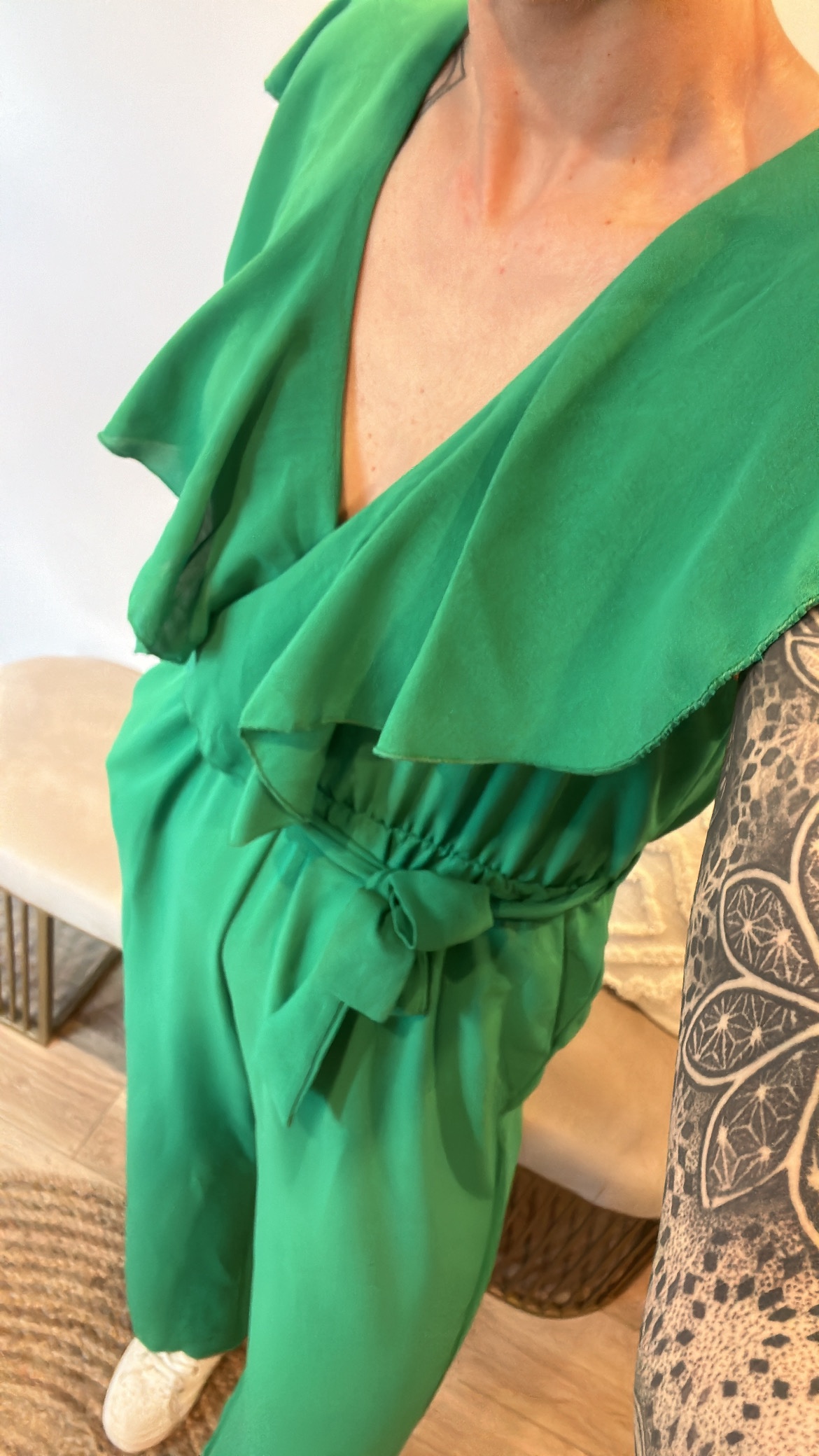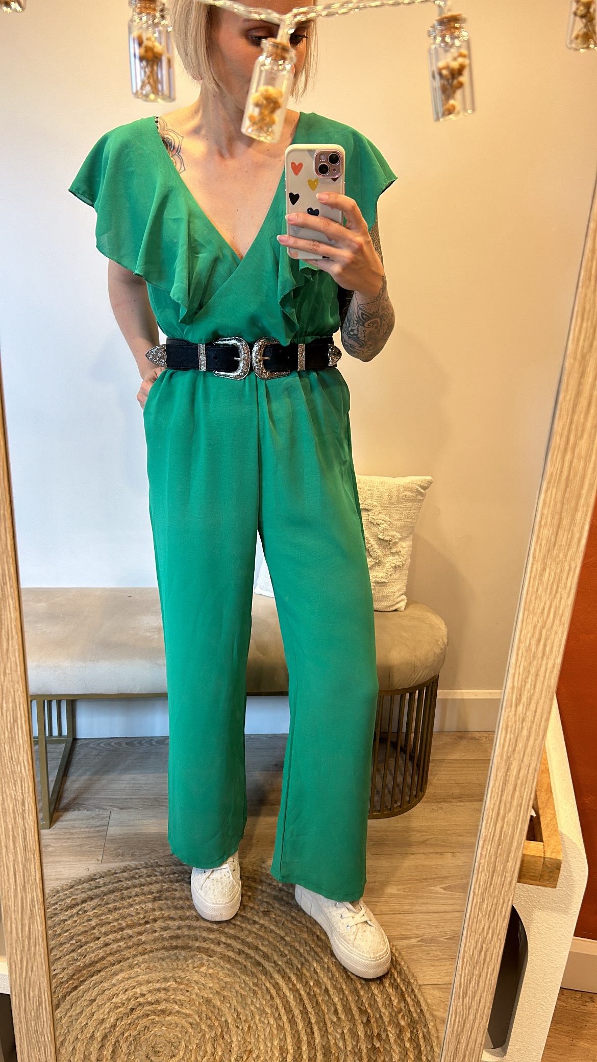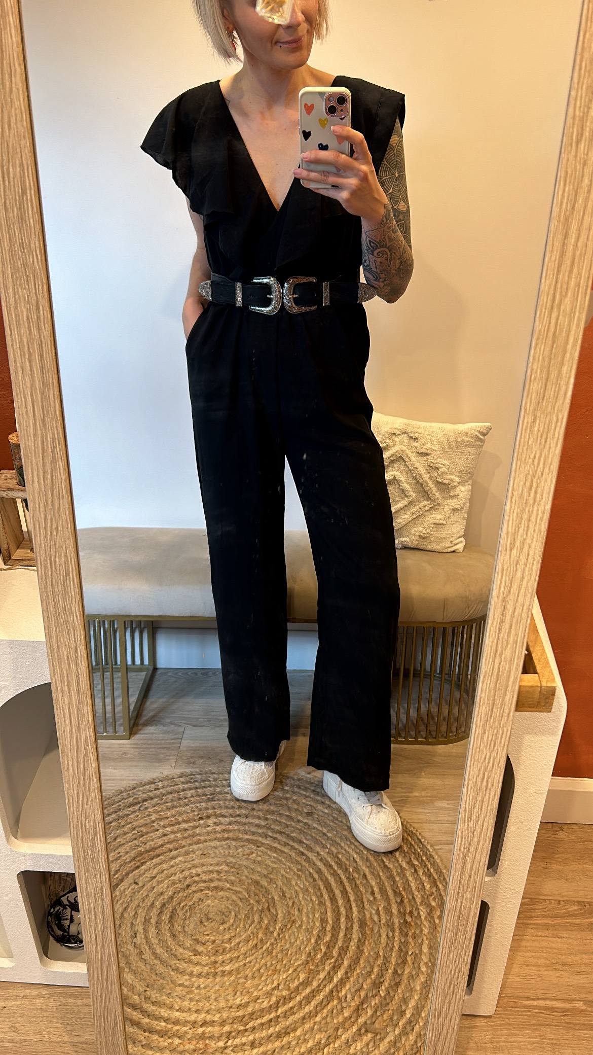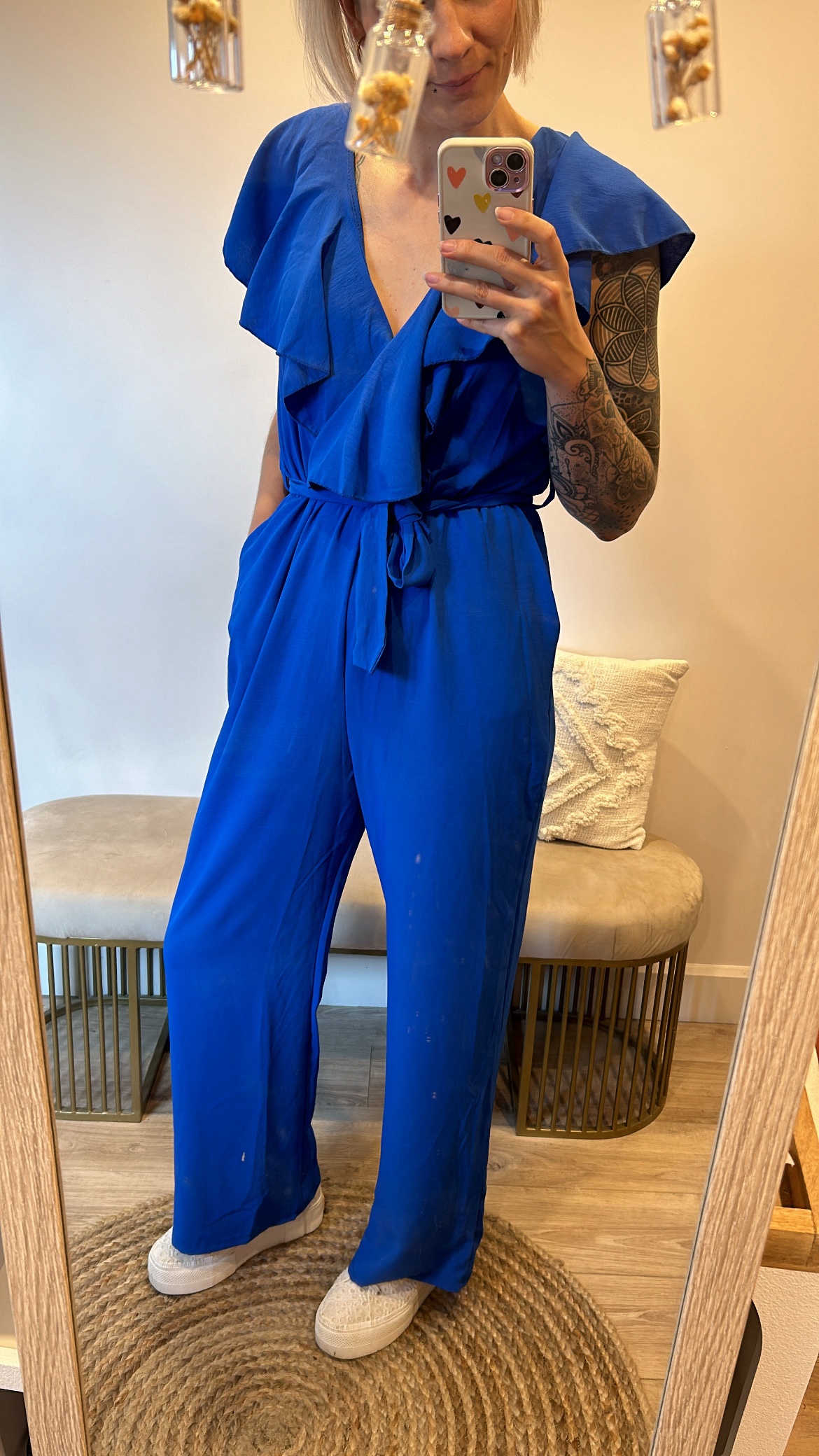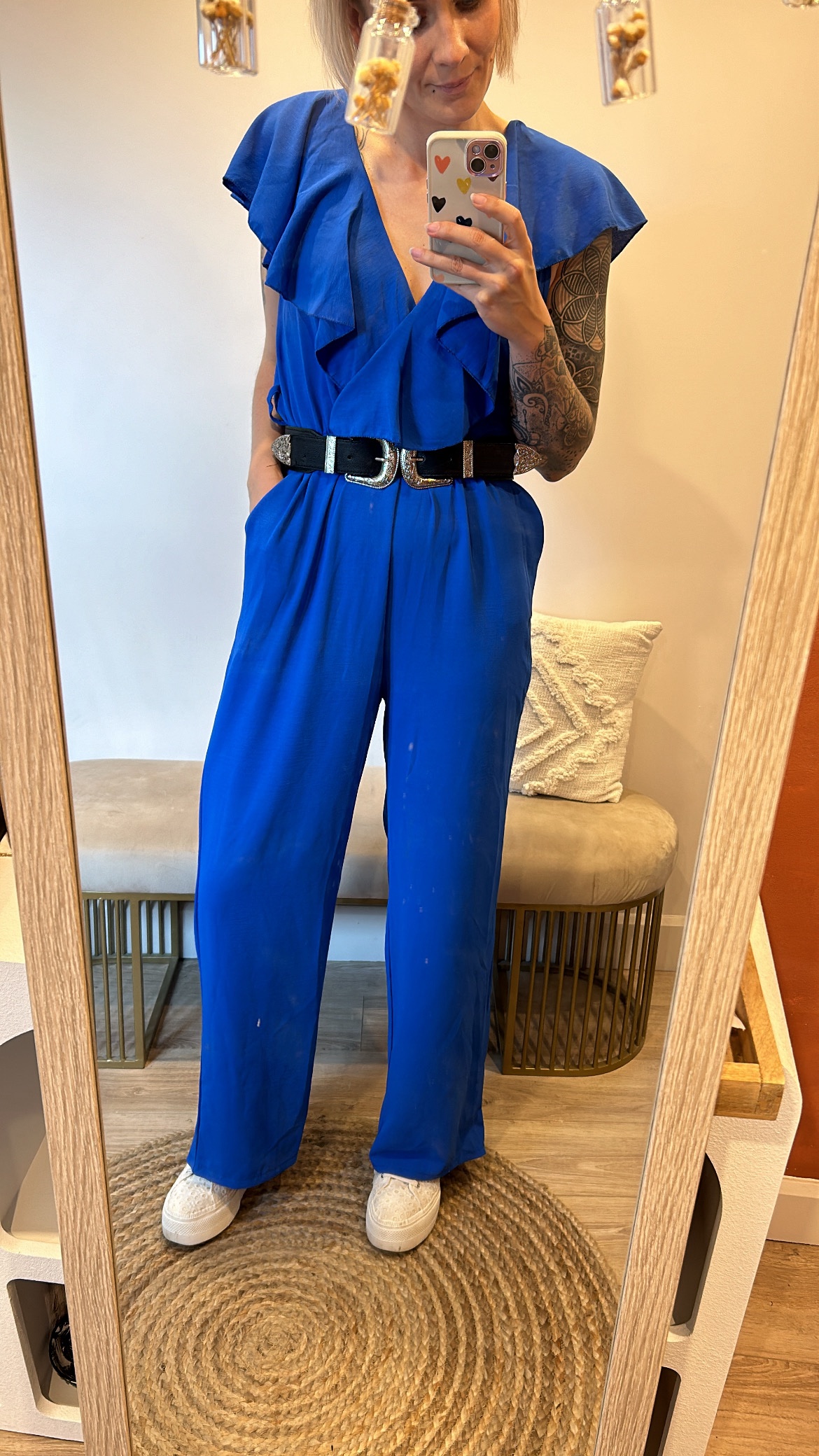 Combinaison taille élastique, lien à nouer à la taille (peut être remplacé par une ceinture). Détails dans le dos et très agréable à porter. Taille unique allant du 36 au 42, plusieurs coloris disponibles.