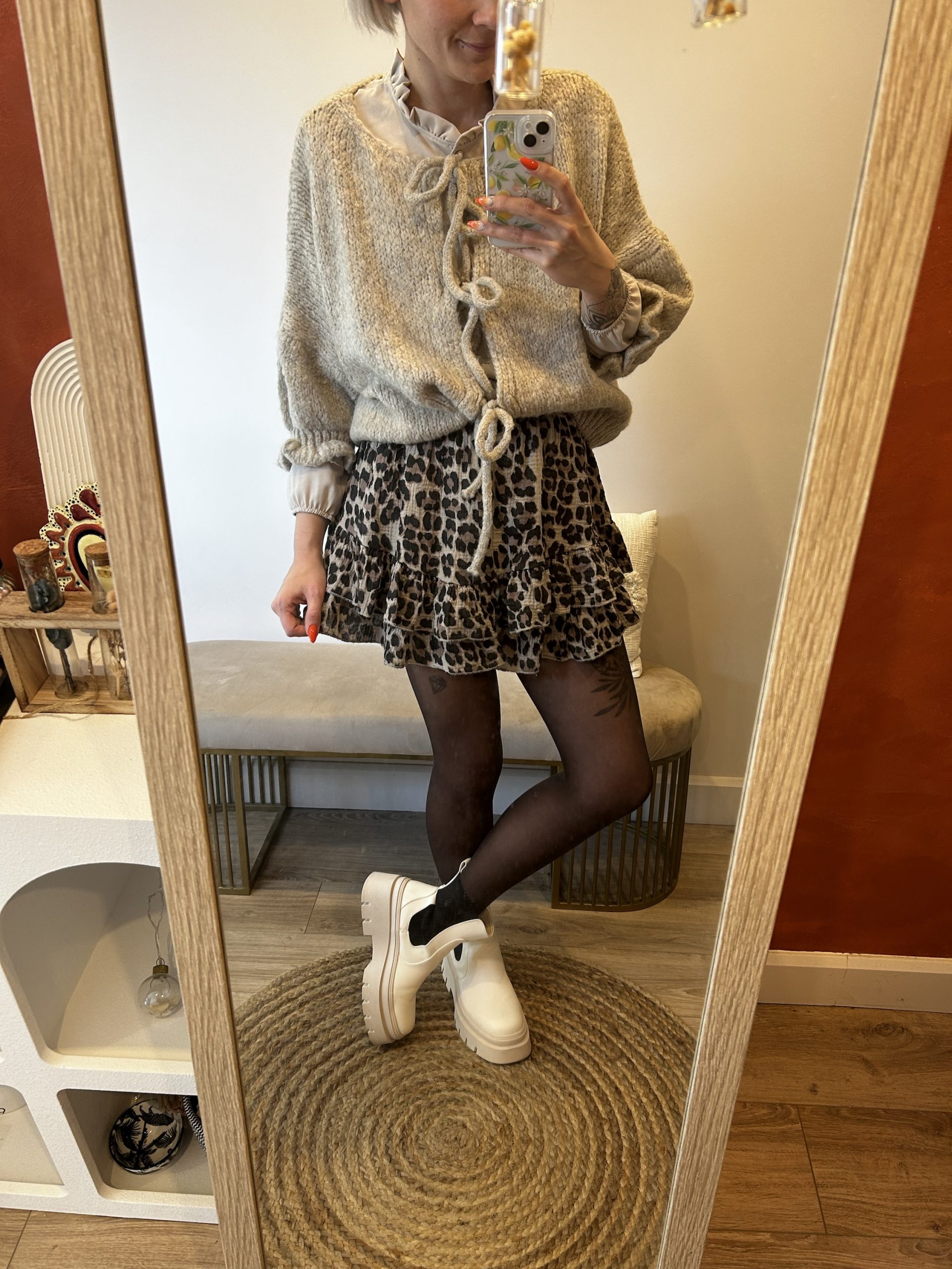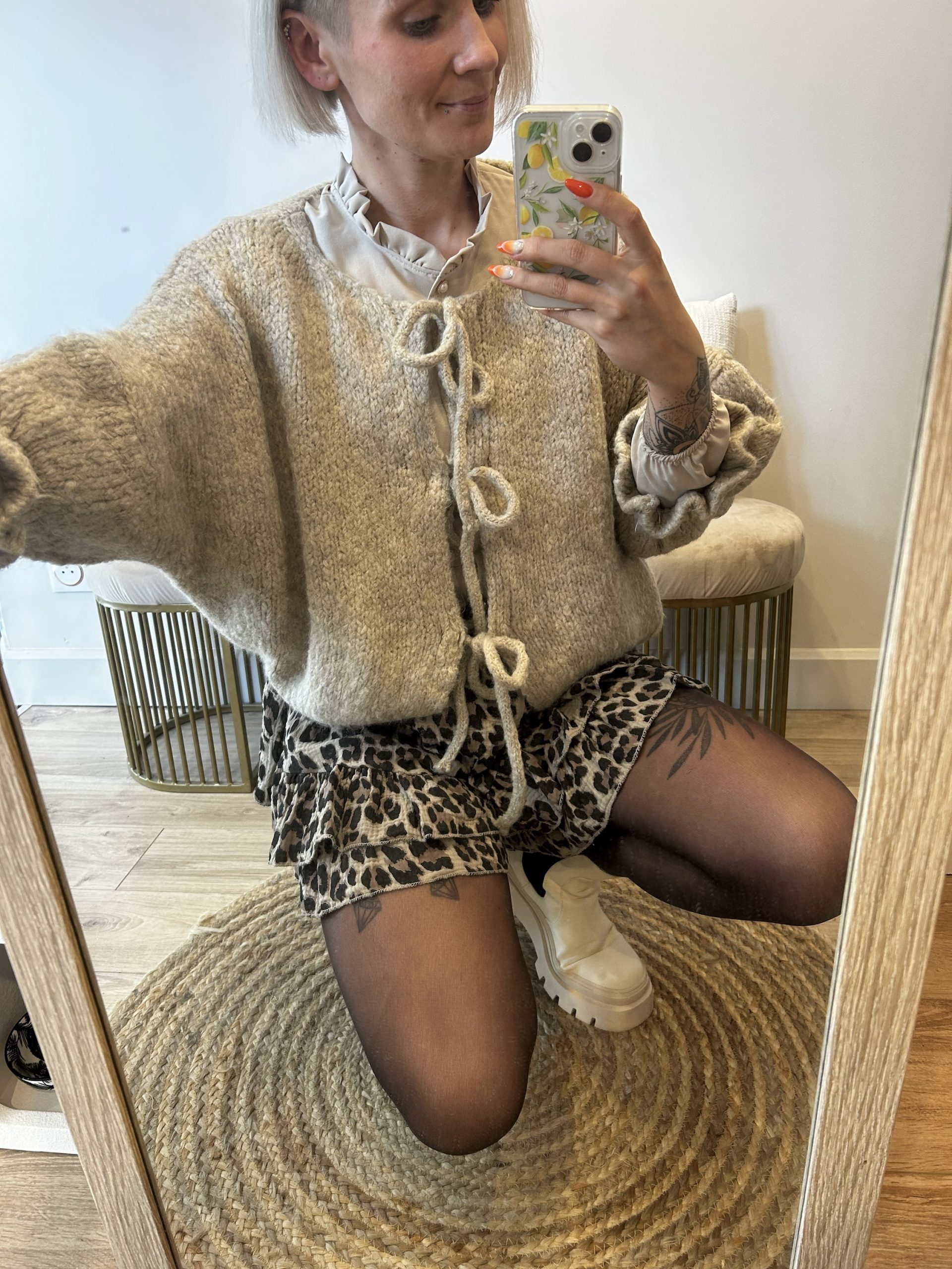 Gilet taille unique (du 36 au 42), couleur taupe. Manches 3/4 froncées.