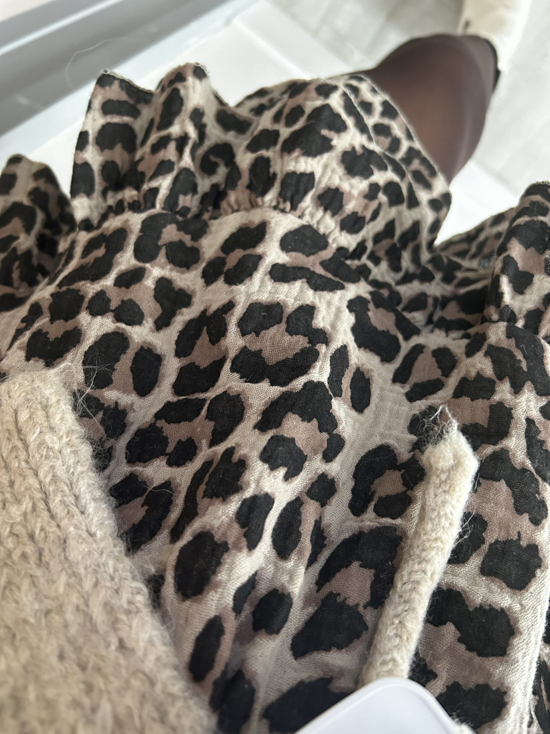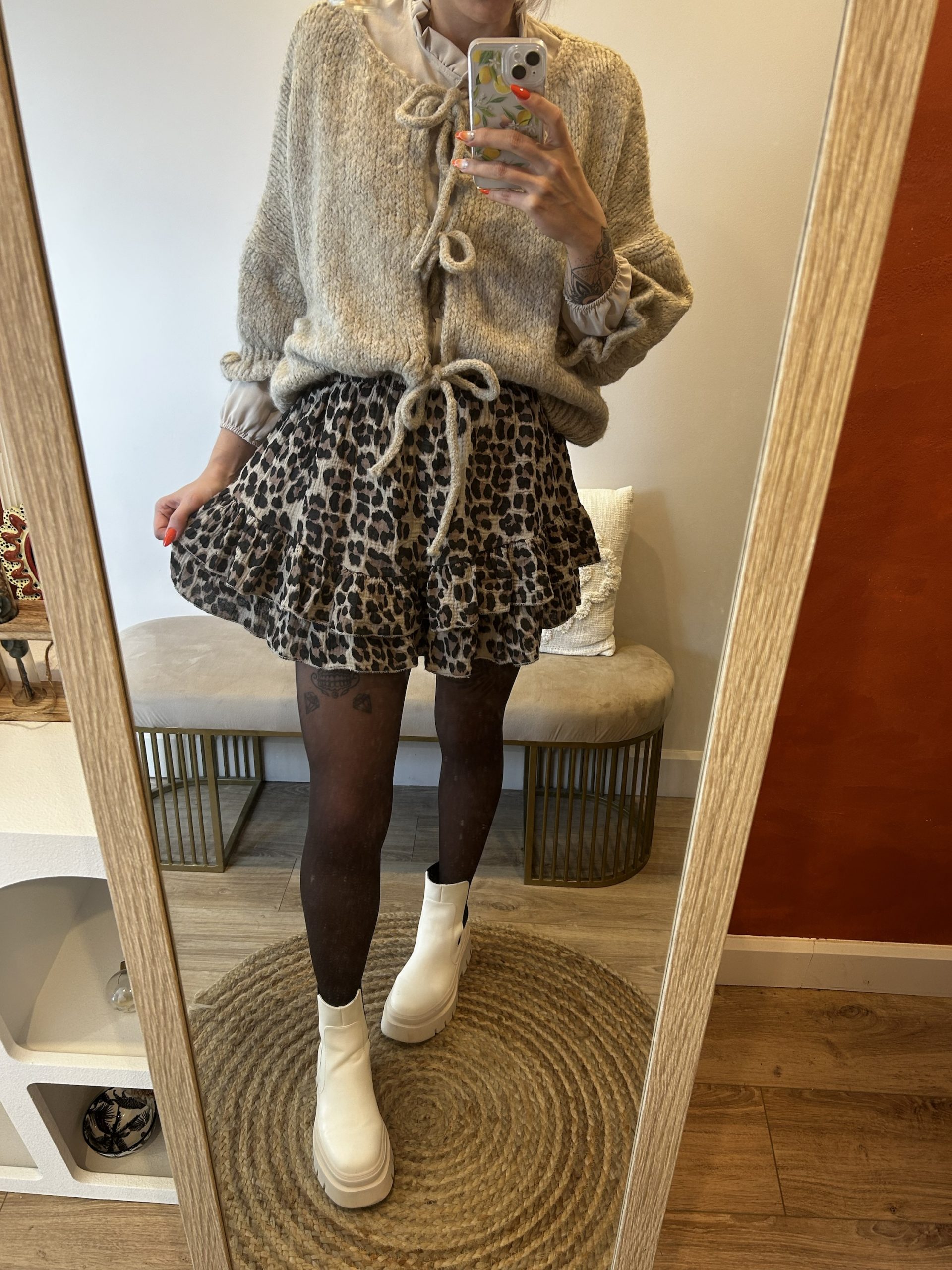 Jupe short en gaze de coton motif léopard. Taille unique du 36 au 42.