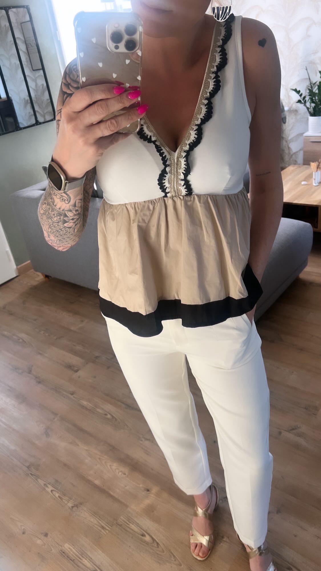 Top taille unique du 36 au 42, matière très agréable, col V devant et dans le dos.